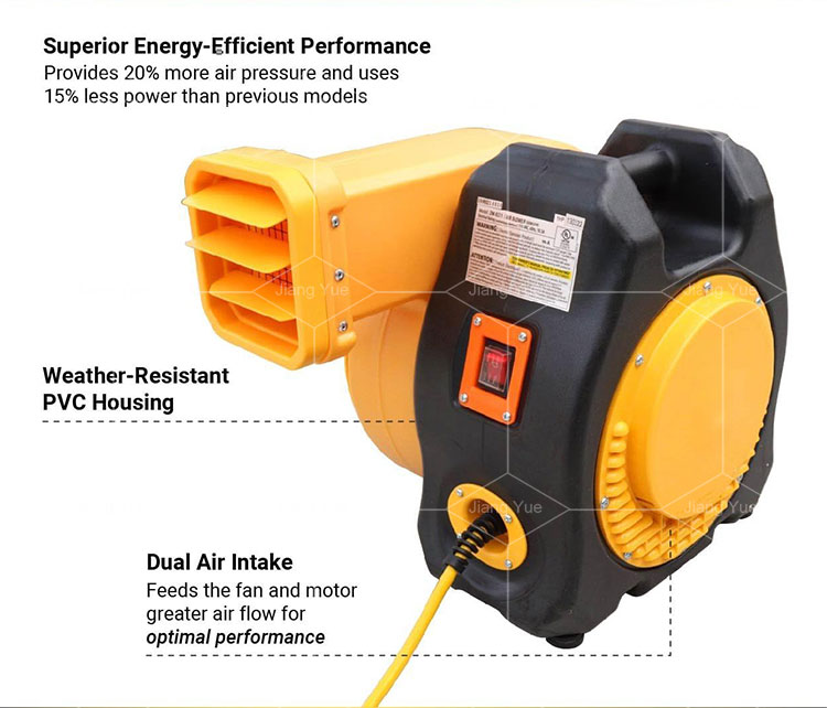 It has amazing power. It comes in two horsepower options, 2 HP and 2.1 HP. Operating at 3100 r/min, it provides strong airflow. This makes it ideal for inflating various items quickly. The blower is designed for both commercial and residential use, demonstrating high work efficiency. You can depend on its power for any inflatable setup. The motor's performance is unmatched. In terms of working efficiency, the motor meets the demands of busy inflatable businesses. Whether you need a bounce house blower or a slip 'n slide, it excels. Is it a dependable choice for every inflatable setting? Expect quick and efficient inflation each time.