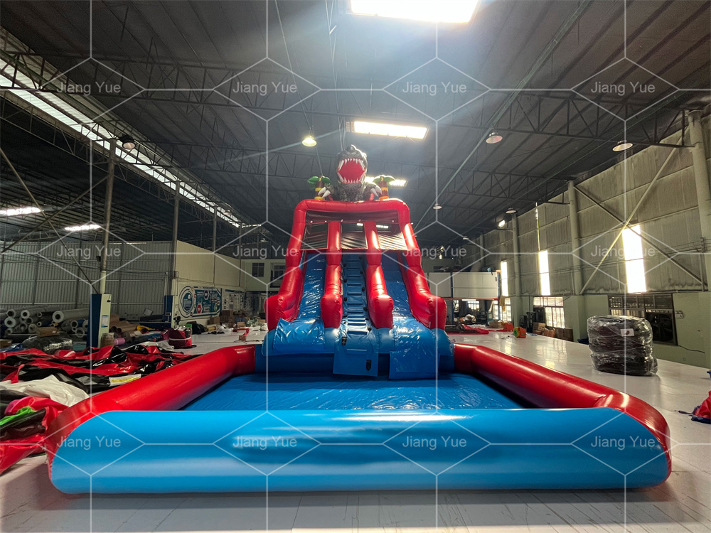 Dinosaur Inflatable Slide Customized Double lane Water Slide with Pool