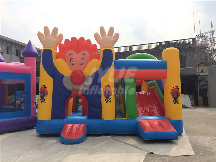 Clown Inflatable Bouncy Castle Combo become more and more popular in the fun city park. it is one kind of bounce house combo with slide, obstacle courses, games and so on. Its design is specific, there are many shapes exist in our company. Kids in the inflatables will always enjoy themselves. It is a new shape inflatable for kids.