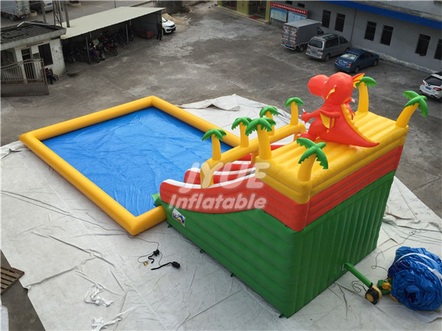 High quality custom dinosaur slide giant inflatable water park with pool for summer​