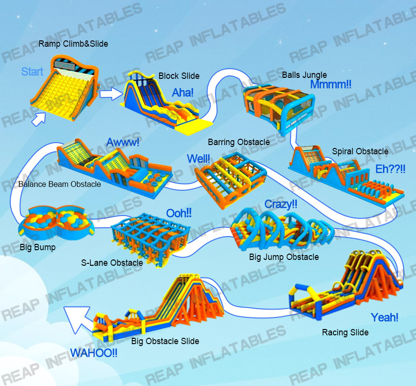 These inflatable obstacle courses will challenge the most energetic and athletic guests! 5K inflatable obstacle courses is perfect for adults and children. If you are planning to hold this kind of big event, call us , we will give you some advice! If you have a Sport & Recreation event company, 5K obstacle course is perfect for your company, it can expand your fans and you will get continue profit from the tickets of this event.