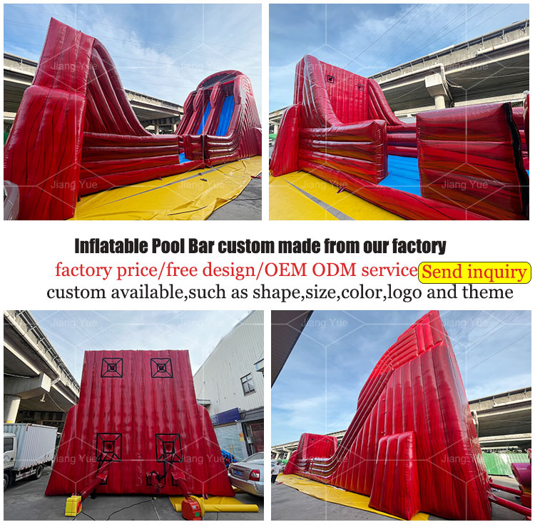 The inflatable zip line requires courage, agility, speed, and competitive spirit. Two people start by climbing into a volcano and scaling inside the volcano up to the suspension bridge. The people must climb through the 40 foot suspension bridge to re of the mountain. Each person is then secured into the zip line basket by our attendant. Once each contestant is whistle blows and the contestants descend down a 40 foot zip line to the bottom.